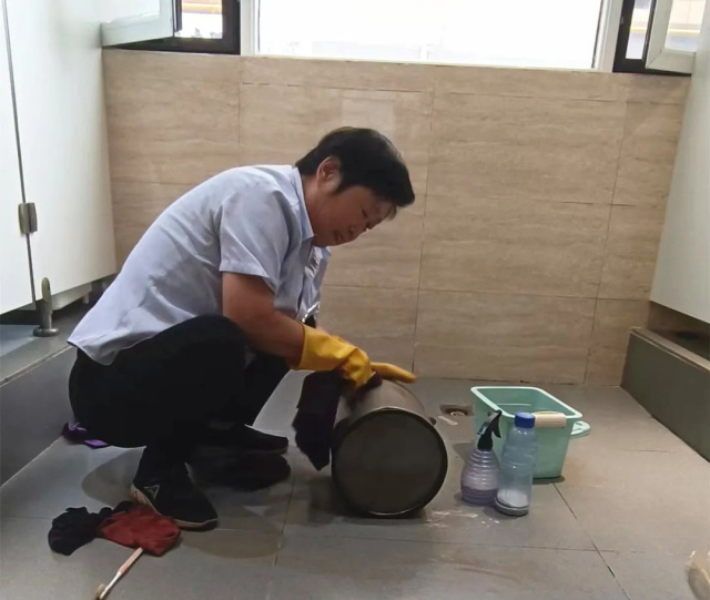 門窗、地板、衛生間、電梯、陳設……甚至于每個角角落落,隨處可見這支能打勝仗的“娘子軍”的身影。習慣于美好環境的我們雖然容易忽視她們,但是沒有她們匠心精神的付出,沒有一次次跪地和彎腰的擦拭拖掃,又哪里來的舒心整潔?