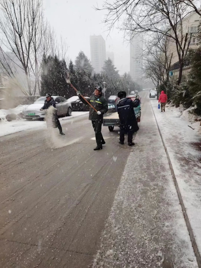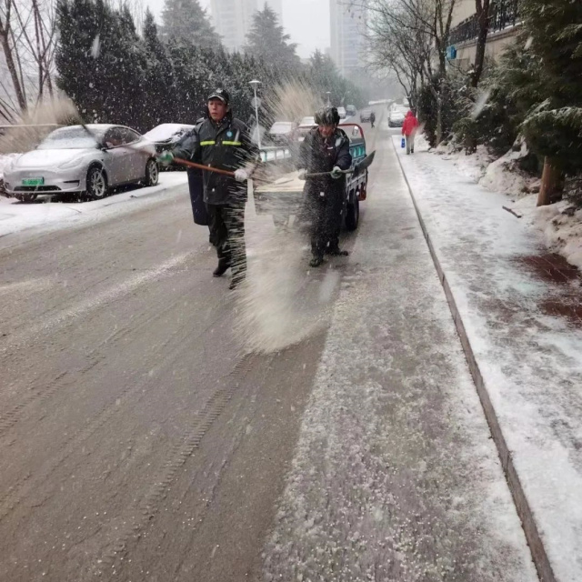 集團(tuán)公司要求各物業(yè)公司對(duì)掃雪鏟冰工作的組織部署、統(tǒng)籌調(diào)度、檢測(cè)匯報(bào)等,形成規(guī)范匯報(bào)機(jī)制,分為事前、事中、事后不同階段,及時(shí)反饋工作進(jìn)展情況。各部門員工積極響應(yīng),頂著寒風(fēng),不畏冰雪,對(duì)各自區(qū)域積雪進(jìn)行清掃和撒鹽。在此輪掃雪鏟冰工作中,物業(yè)各部門全體員工不畏嚴(yán)寒,全力以赴,充分展現(xiàn)出了高度的責(zé)任心和奉獻(xiàn)精神。