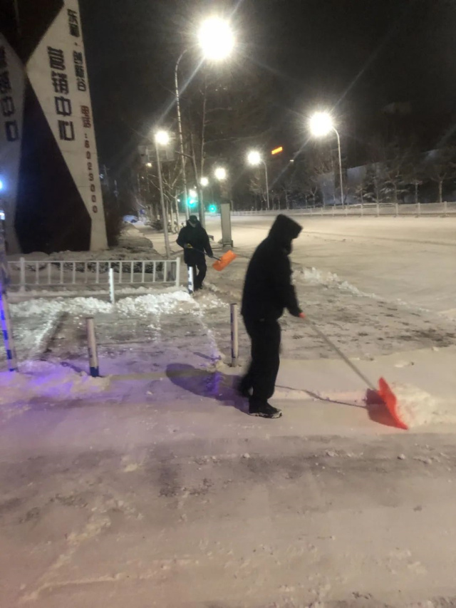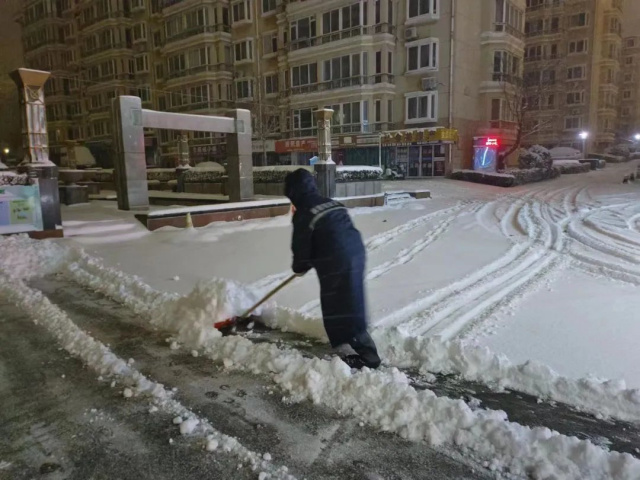1月21日以來,港城再次迎來持續(xù)降雪,大雪給廣大居民造成出行不便,同時(shí)也給物業(yè)人員帶來艱巨任務(wù)。下雪就是命令,見雪就要見行動(dòng)。凌晨四五點(diǎn)鐘,南堯集團(tuán)各物業(yè)就快速啟動(dòng)冰雪天氣應(yīng)急預(yù)案,迅速組織人員開展除雪工作,力求搶在人們出行的高峰期將積雪清理干凈。