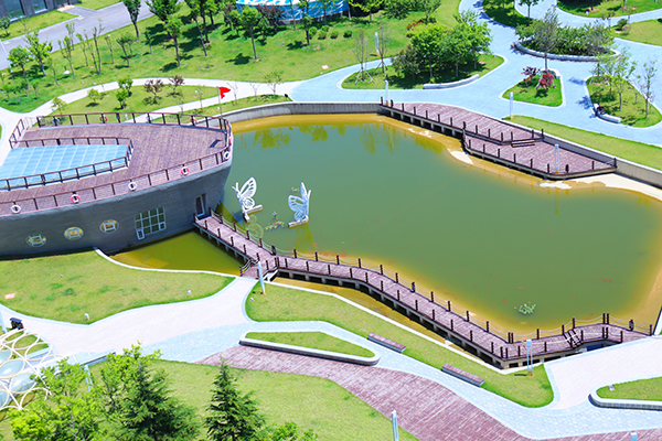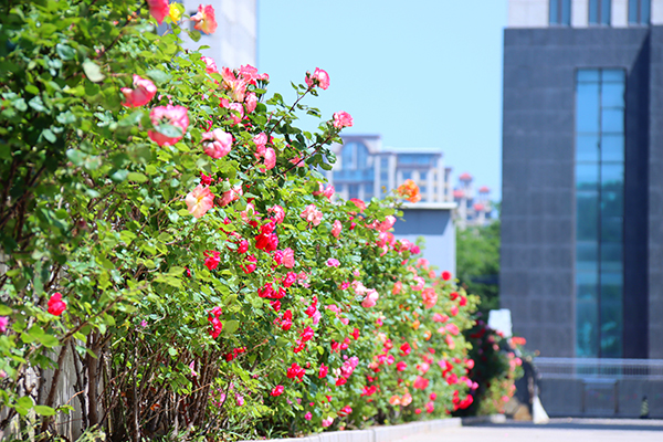 不僅僅是一個綠化的搭配,其實是山水林木、花草植被與人文體驗交融的一個休閑公園,這在煙臺是比較稀有的。在推進景觀帶建設過程中,園區巧妙利用了山形地貌和綠色植被,在保留原有景觀特色,依山傍水就勢布局建設。景觀帶引入的苗木種類十分豐富,有銀杏、櫻花、松柏、龍柏、黃楊、美人梅、國槐、海棠、月季等,綠樹紅花,灌木成簇,再加上依傍五卒山,整個形成了一個小的自然生態圈。